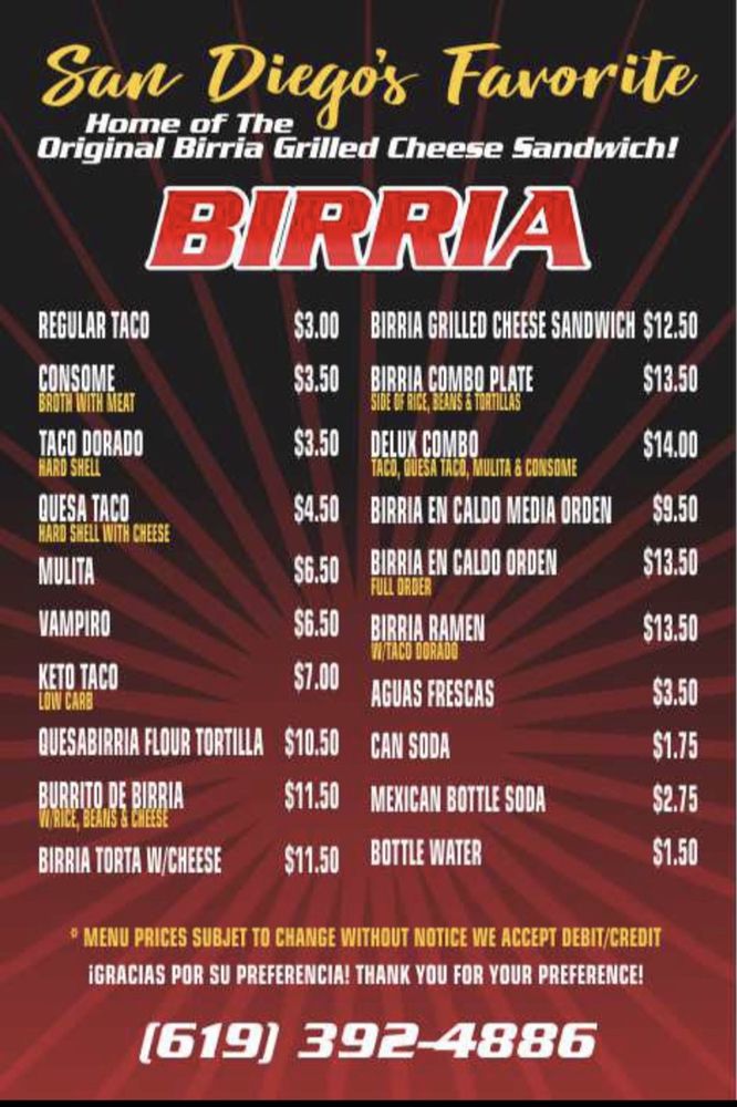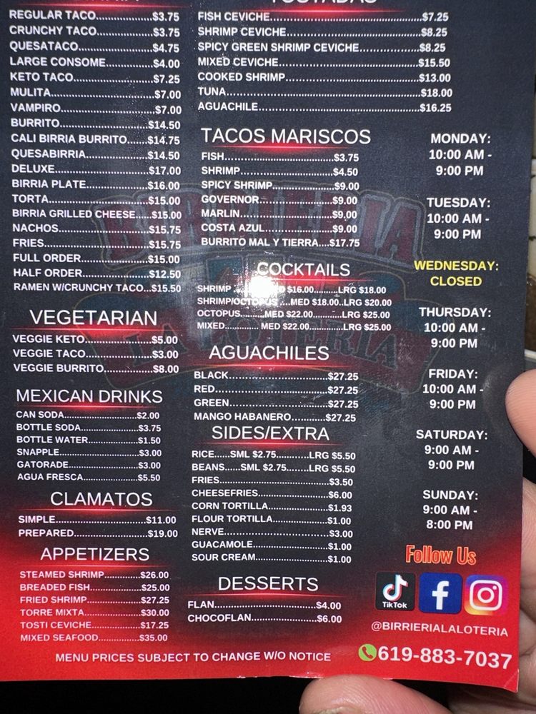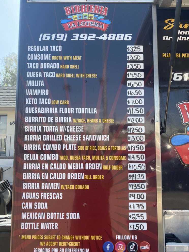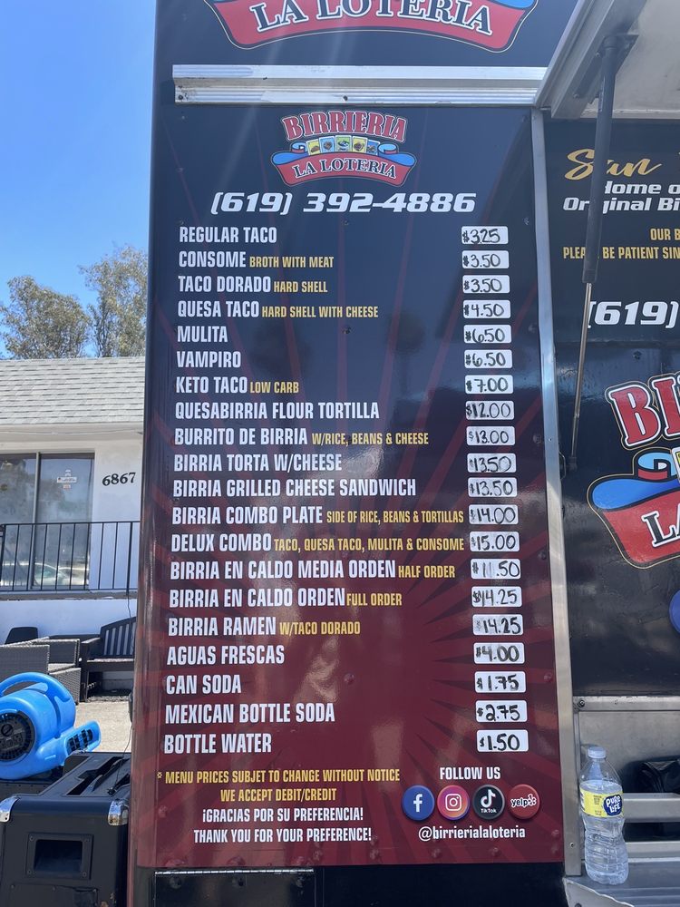 Birrieria La Loteria Menu